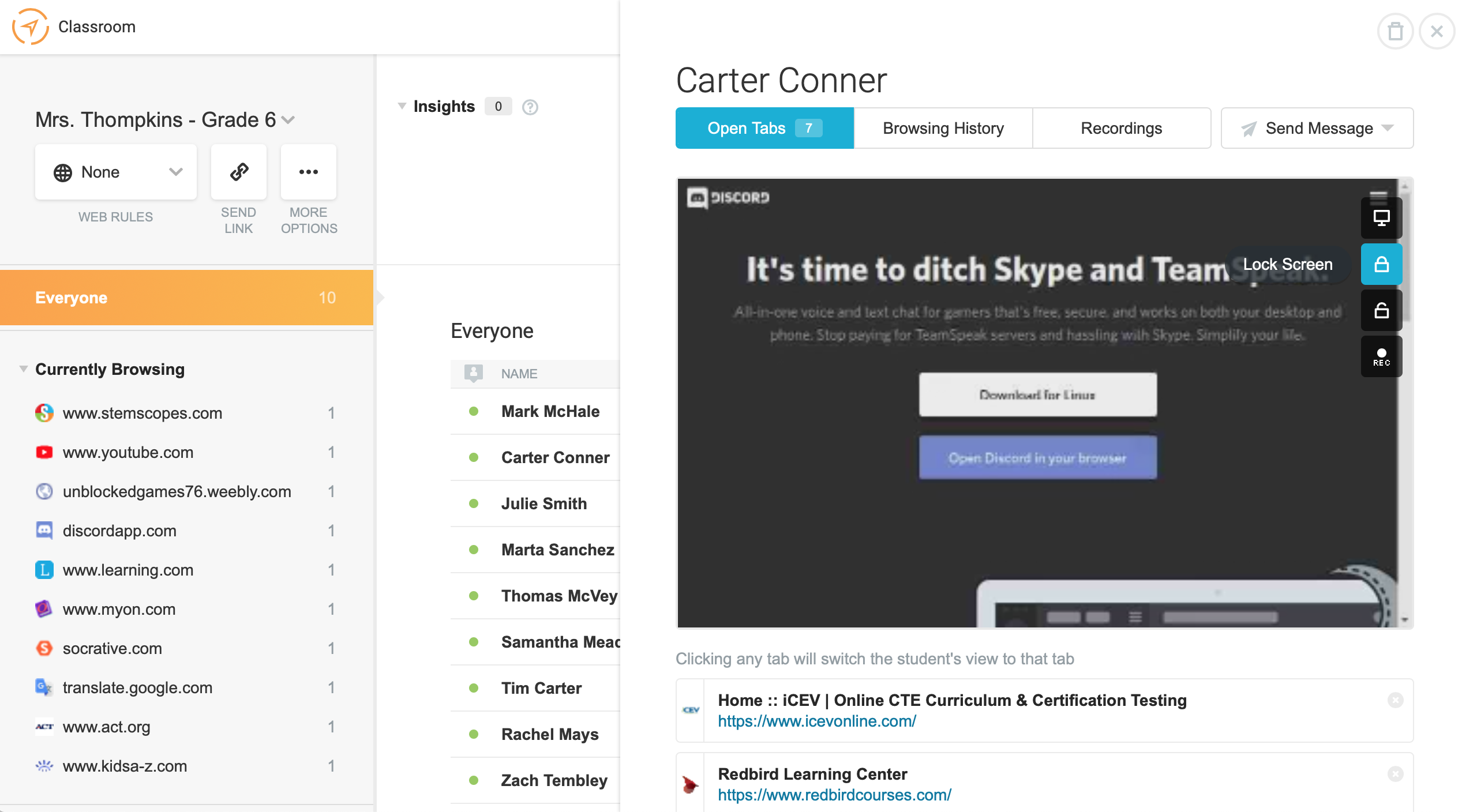 - Lassen Sie sich die Bildschirminhalte der Schüler anzeigen und zeichnen Sie diese auf