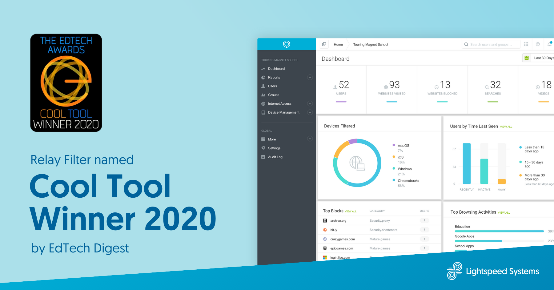 오스틴, 텍사스, 2020년 5월 12일(GLOBE NEWSWIRE) — 시장을 선도하는 Lightspeed 필터™ ~에서 라이트스피드 시스템® ("Lightspeed" 또는 "회사")는 2020 Cool Tool Award 수상자로 선정되었습니다. 에듀테크 다이제스트Lightspeed Filter는 네트워킹, 정보 기술, 연결성 또는 액세스 솔루션 부문에서 인정을 받았습니다.